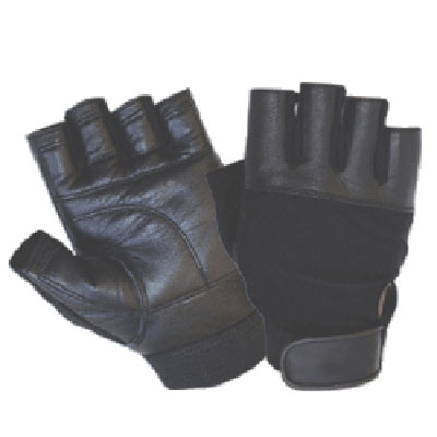 Palm: Black goat skin + reinforced double stitched foam padded goat skin. Back : Black fore way + goat skin & elasticated wrist cuff + velcro closing.