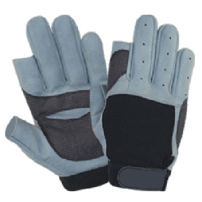 Palm: Grey amara + reinforced double stitched kevlar grippy for highly extra strength & grip. Back : Black foreway (nylon cloth) + amara & velcro closing starp.